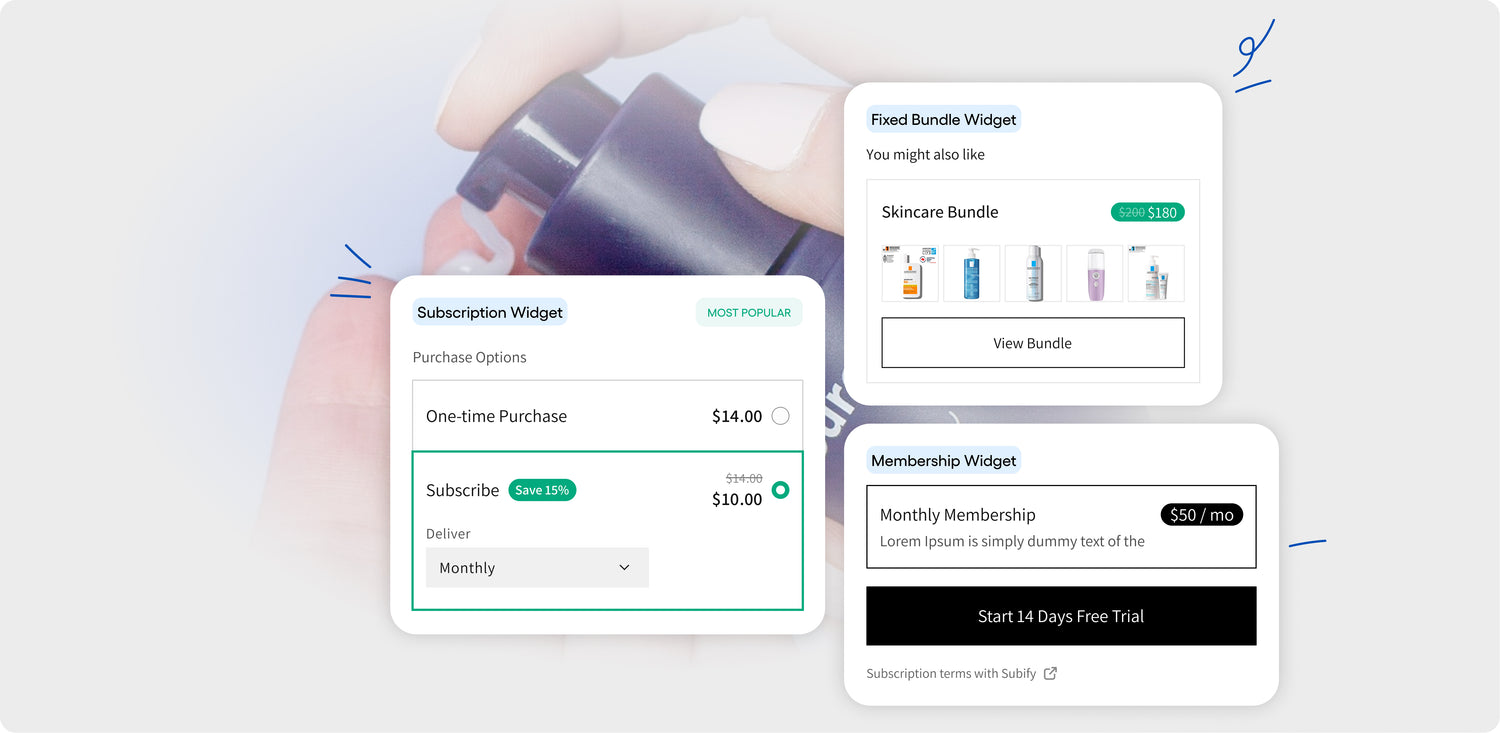 Subi makes it easy to add subscription plans to your products. Simply select a product, set a subscription plan, and let your customers subscribe with flexible billing options.
